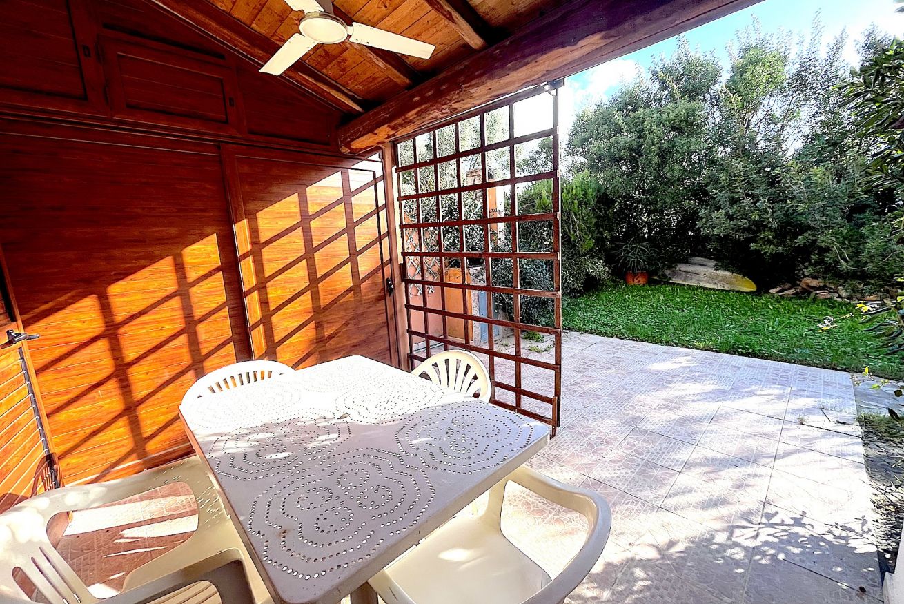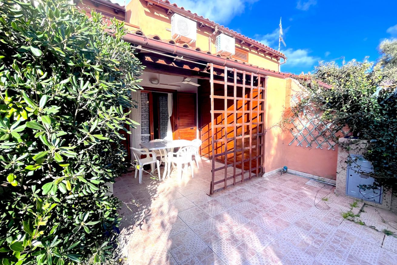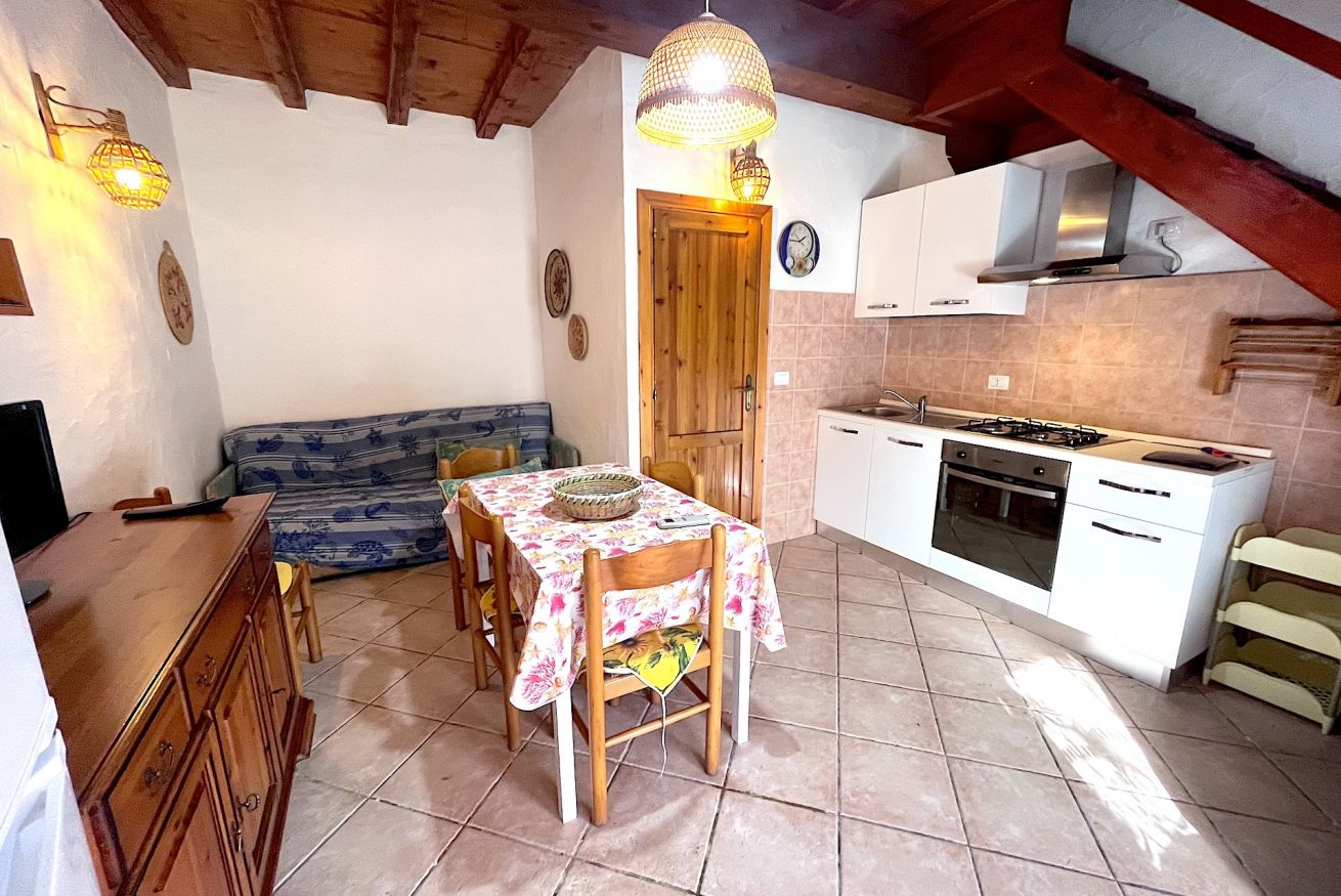 Bilocale in Villaggio situato in zona centrale ma tranquillo. L'alloggio è adatto a famiglie, composto da un'ampio giardino angolare, veranda coperta e attrezzata, soggiorno con angolo cottura e divano letto doppio, camera da letto matrimoniale soppalcata con aggiunta di un letto singolo, tv, lavatrice, aria condizionata, bagno con doccia e doccia esterna in giardino. Posto auto condominiale.
