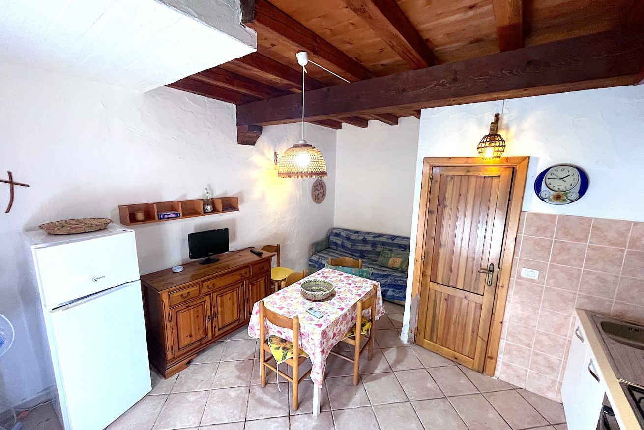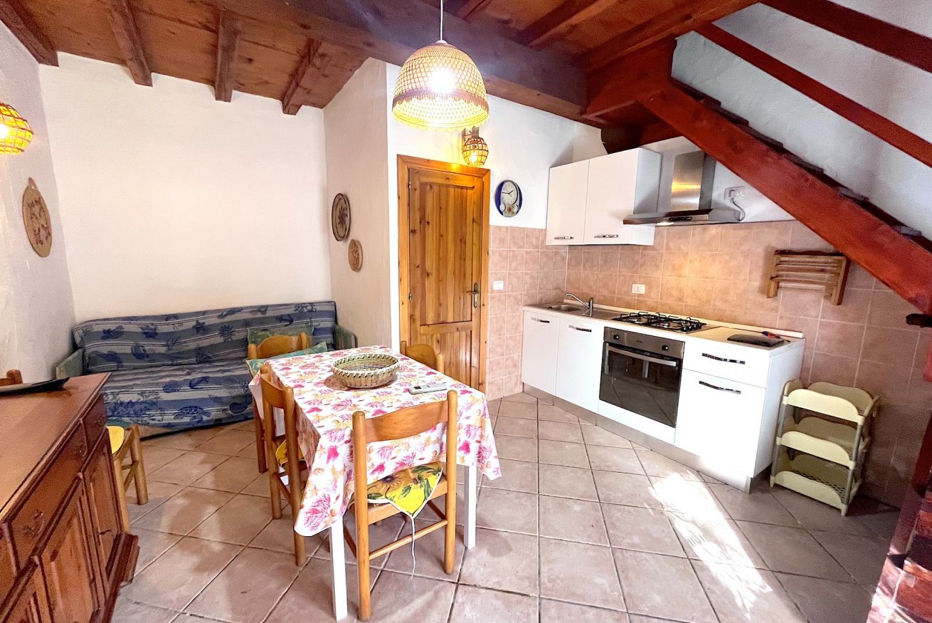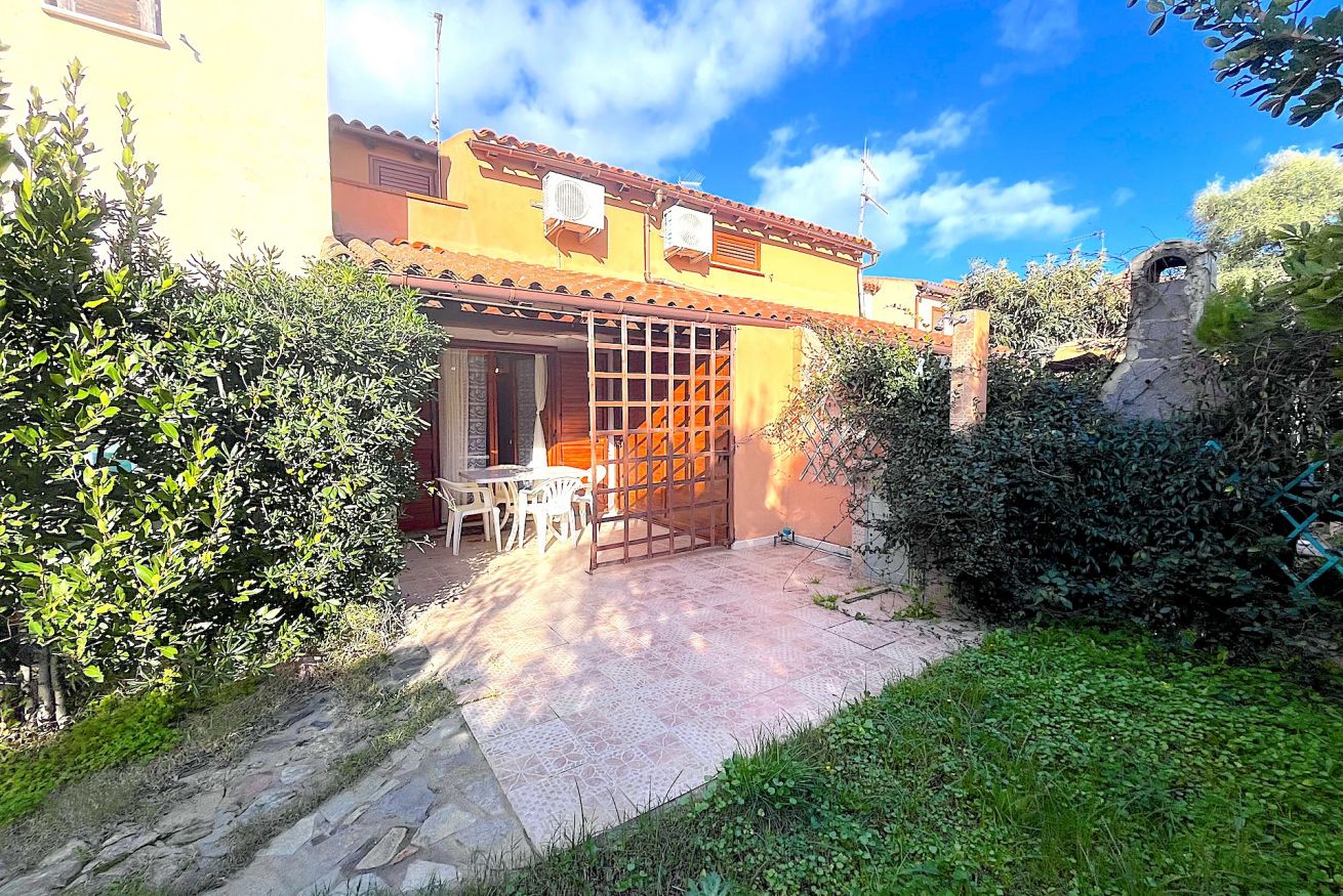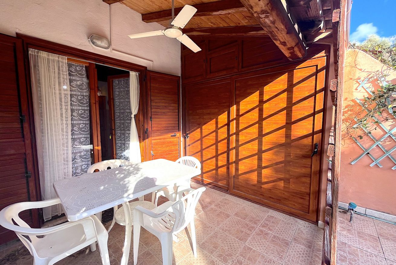 Bilocale in Villaggio situato in zona centrale ma tranquillo. L'alloggio è adatto a famiglie, composto da un'ampio giardino angolare, veranda coperta e attrezzata, soggiorno con angolo cottura e divano letto doppio, camera da letto matrimoniale soppalcata con aggiunta di un letto singolo, tv, lavatrice, aria condizionata, bagno con doccia e doccia esterna in giardino. Posto auto condominiale.