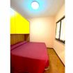Bilocale al piano terra, composto da una camera da letto matrimoniale, soggiorno con angolo cottura e divano letto matrimoniale, tv, bagno con box doccia, aria condizionata, veranda coperta, giardino riservato, posto auto condominiale, lavatrici a gettone all’interno del Residence, docce esterne.