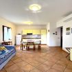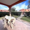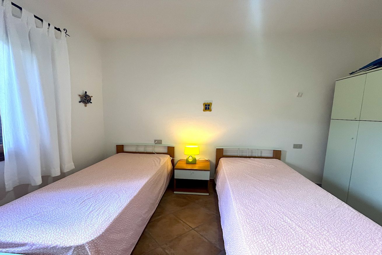 Villetta caposchiera al piano terra con ampio giardino, situata a due passi dal centro e dal mare. Composta da camera da letto matrimoniale, una camera con 2 letti singoli eventualmente unibili, ampio soggiorno con angolo cottura, bagno con box doccia, tv, lavatrice, televisione, veranda coperta e attrezzata, aria condizionata in tutti i locali. Doccia esterna, posto auto assegnato.